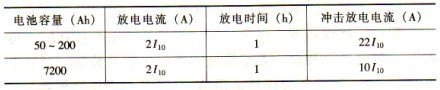 2)事故過程中沖擊電流放電能力。當蓄電池容量達到滿容量時,按0.1110放電1h后,在不停電放電狀態下,沖擊電流疊加到表2-3規定的沖擊電流時進行放電,共放電10次,每次時間為500ms,時問間隔為2s,放電后直流母線電壓不低于90%UN。