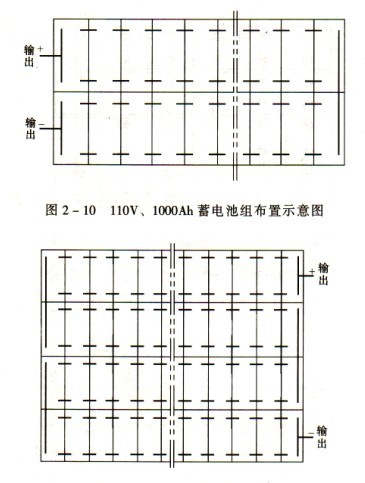 圖2一ll 220V、1000Ah蓄電池組分布置示意圖
